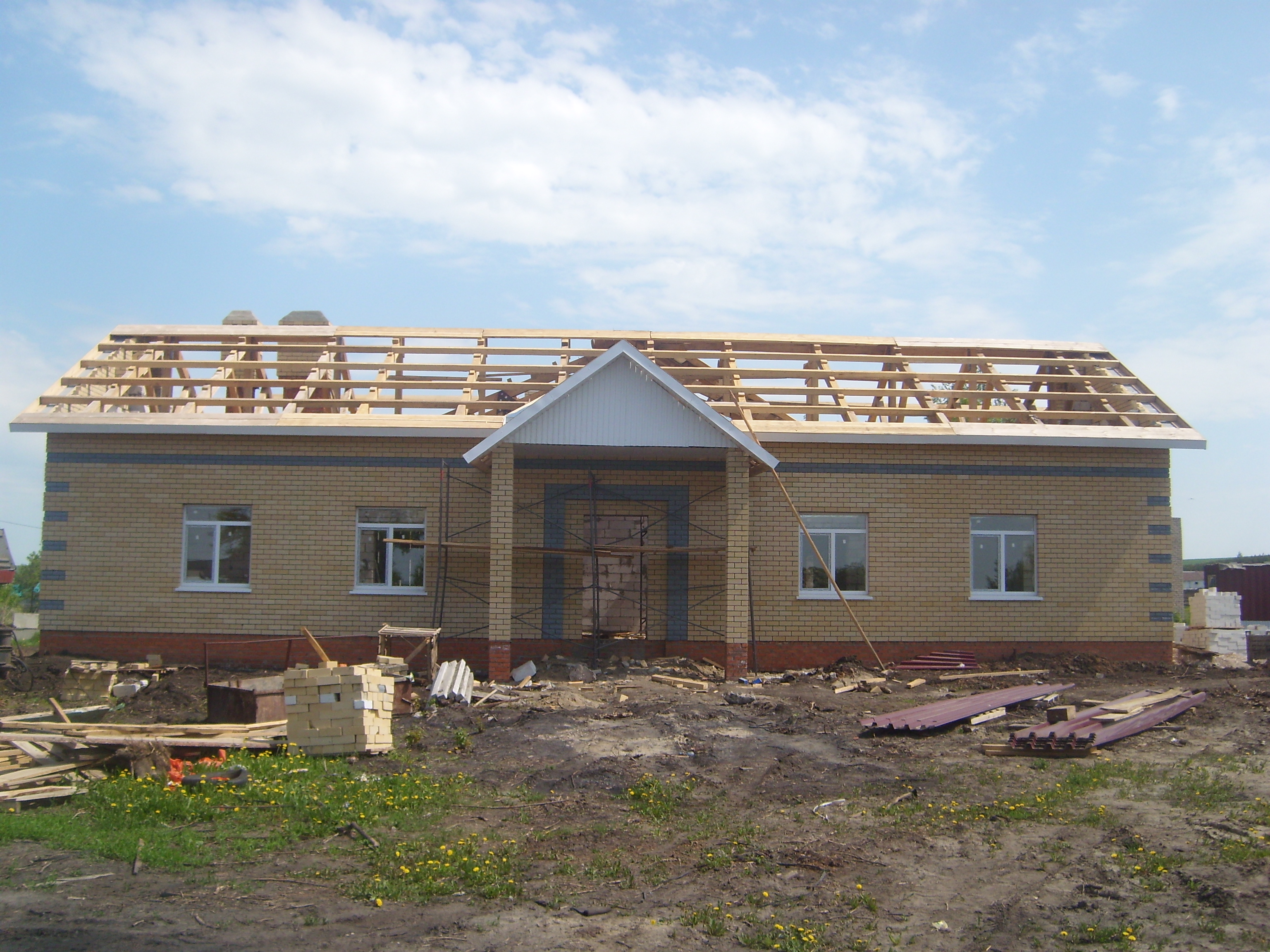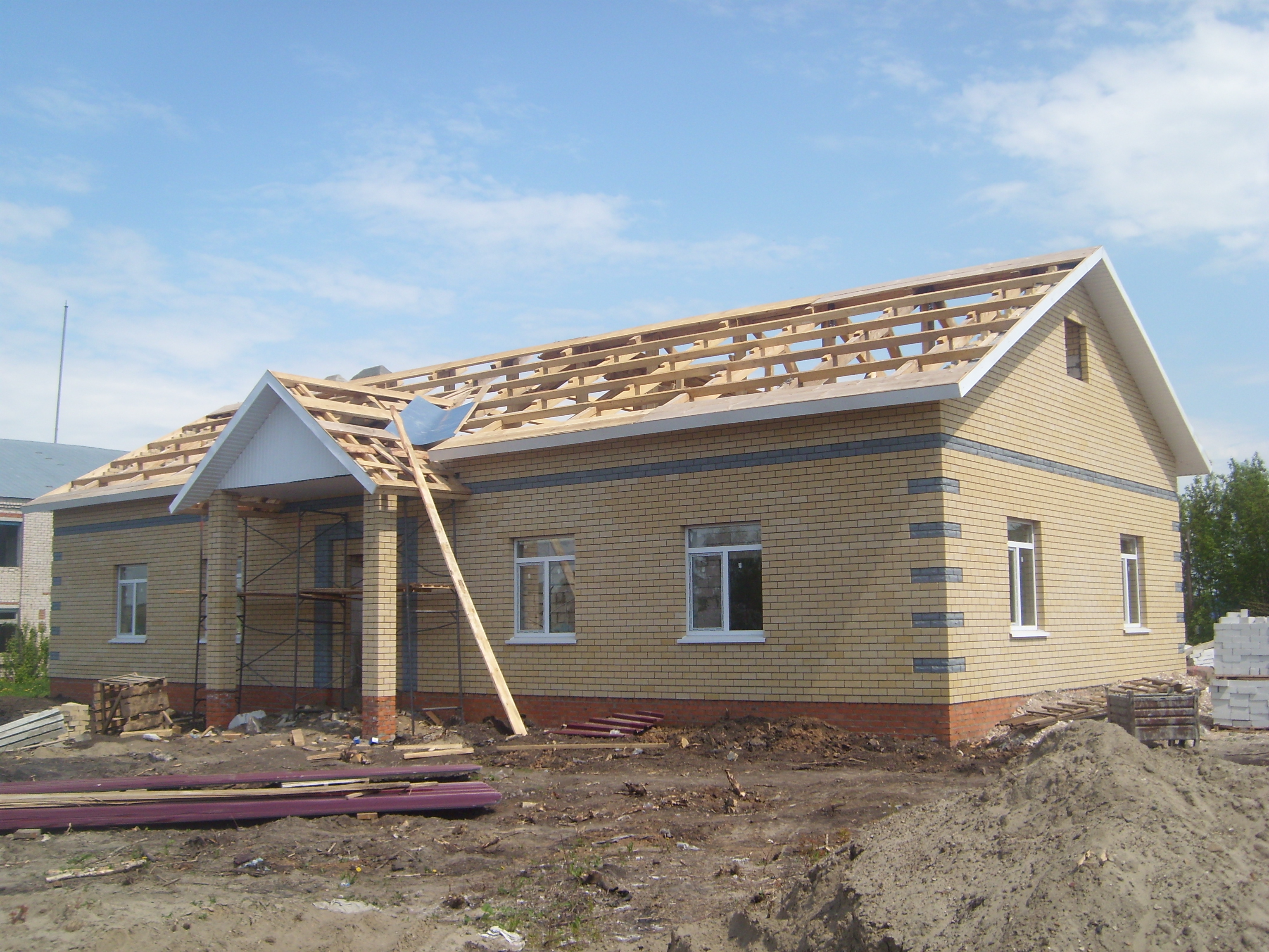 Продолжается строительство многофункционального центра в с.Надеждино, рабочие приступили к покрытию крыши.