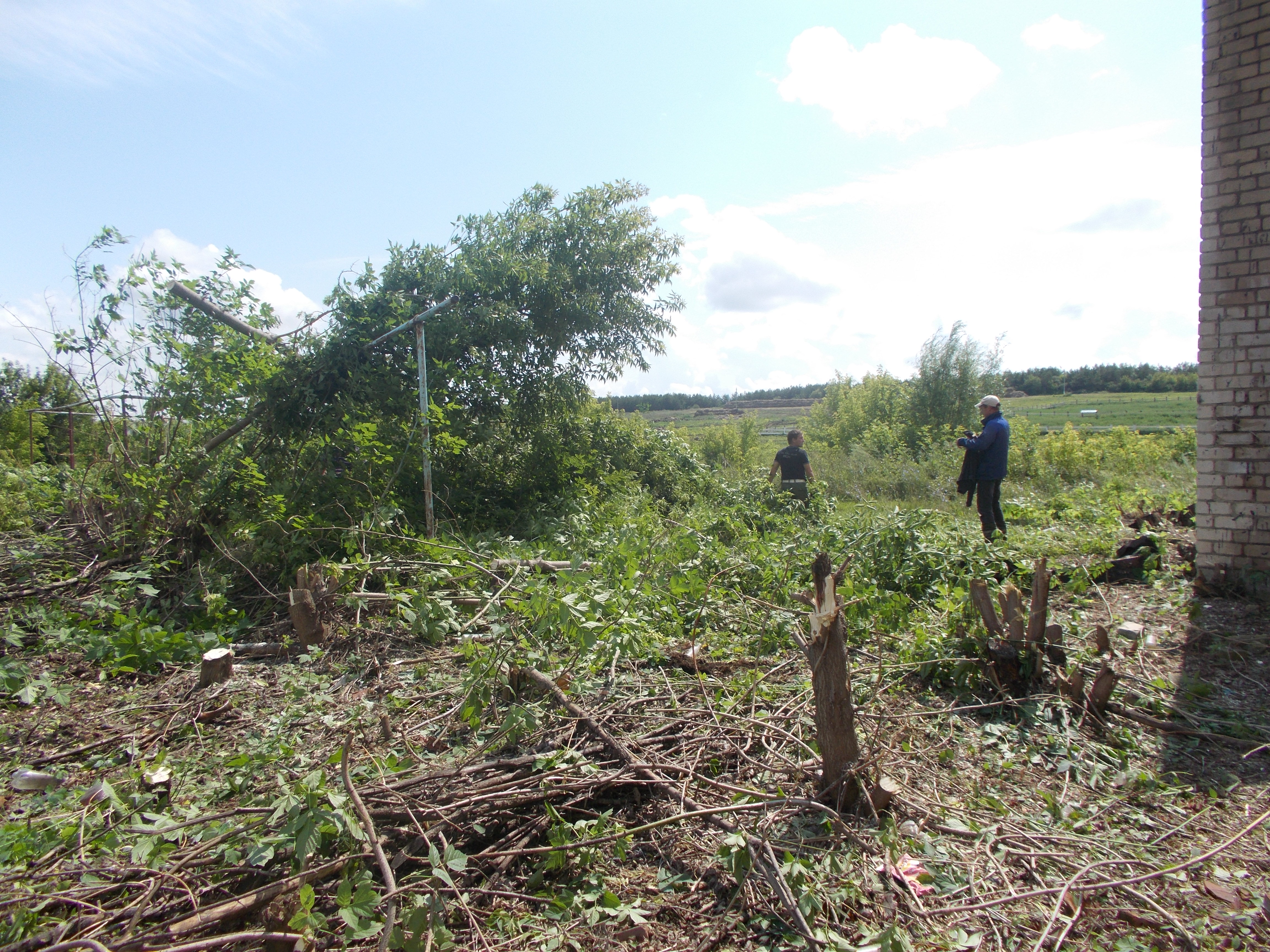 Производится вырубка американского клена и очистка прилегающей территории строящегося многофункционального центра.