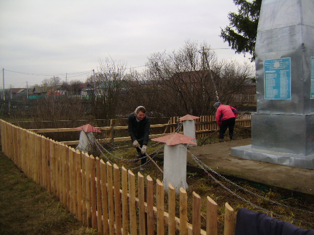 Работники администрации сельского поселения провели субботник по очистке территории памятника погибшим воинам в ВОв.