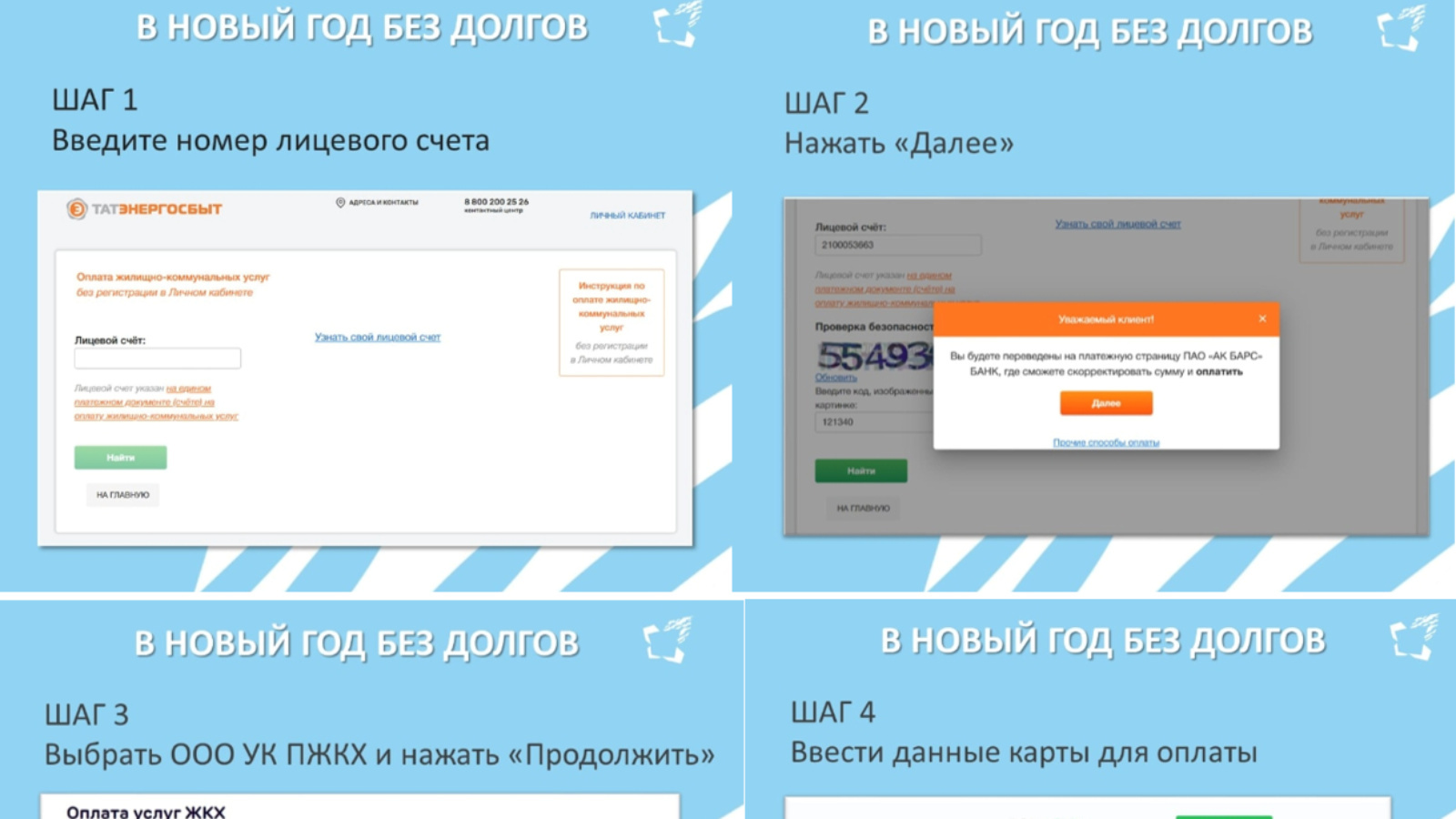 1 ноябрьдән 31 декабрьгә кадәр «ККК белән эш итү» коммуналь хезмәте буенча бурычны түләгез һәм без элек исәпләнгән пеняларны төшереп калдырабыз.